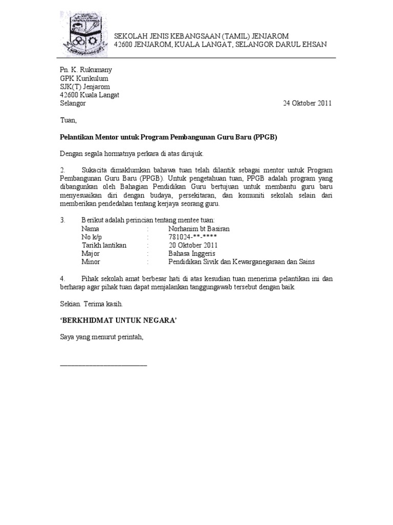 Contoh Surat Pelantikan Mentor Lauryn Gowatkins